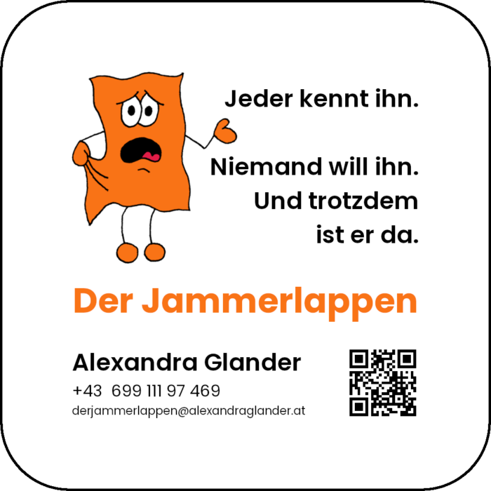 Mit meiner Comicfigur Der Jammerlappen habe ich einen Weg gefunden, den diffusen Zuständen, die oft hinter einem Problem oder Thema stecken, ein Gesicht zu geben.